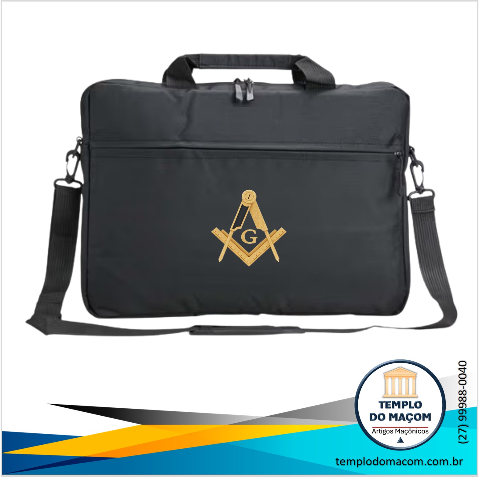 Pasta para Paramentos, Notebook e Acessórios. Possui Logo Maçônico Dourado na Frente.